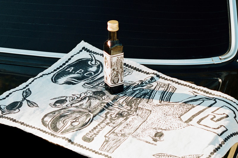 Joining the special olive oil's release is a linen tea towel designed by visual artist Mathias Augustyniak from the M/M graphic studio, who also designed the label.