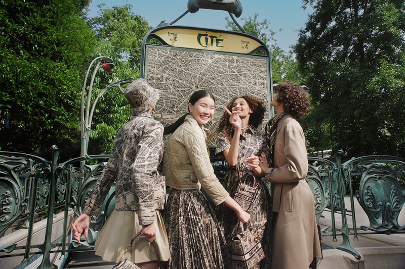 Envisioned by Maria Grazia Chiuri and lensed by Elaine Constantine, the energetic campaign features a group discovering the vibrant landscape, searching for croissants and adventure. Trench coats, cropped jackets, cozy knit sets, chic flared skirts and breezy dresses pay homage to Parisian architecture, subtly serving as a map and a sly invitation to roam about. Bucket hats, effortlessly elegant scarves and Dior's highly coveted book tote join the collection, while slingback pumps, slides and sneakers equipped with chunky soles provide suitable footwear options for endless adventures. Eiffel Tower-themed chokers and bracelets add necessary sparkle, while umbrellas beg for romantic moments in the rain.