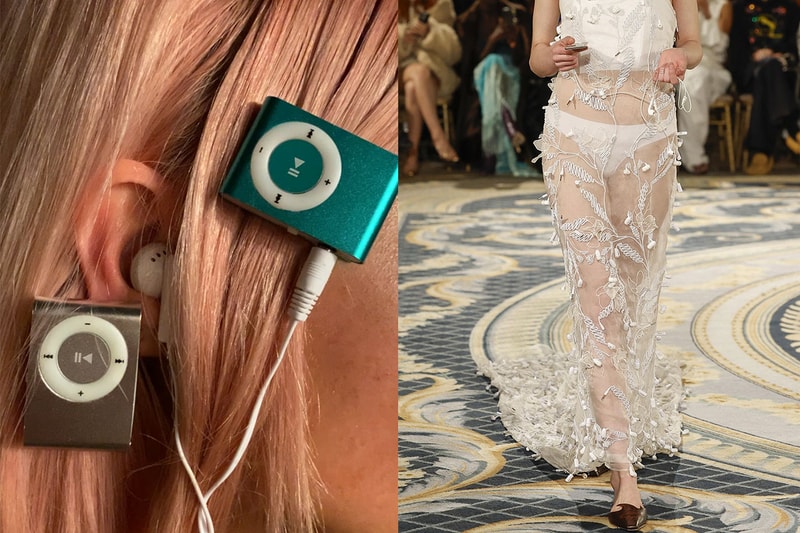 Sinead Gorey went back to the aughts to capture a time where iPod Shuffles and Nanos carried us through our days. For its FW24 showcase, nostalgic tech took center stage as an ode to the girl who is "In a rush to grow up." Celebrating the It-girls of the era, its show notes state: "Indeed, it's quite the ride being this iPod-toting, Blackberry-pinging It-girl. Memories of rollerblading on the front drive or playing Snake on a Nokia brick have been subbed out for pie-eyed evenings at her first rave." iPod accessories were spotted as hair clips and brooches while others were secured tightly into arm bands for the girls on-the-go.