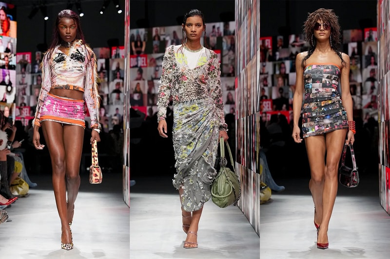 See: We saw ribbed knitwear paired with florals, neon mini skirts and double denim galore. Taking a more tailored approach this season, the brand also revealed faux leather jackets and sleeveless trenches. A key standout were the bags which came in a variety of animal-inspired graphics as well as holographic images of the livestream.
