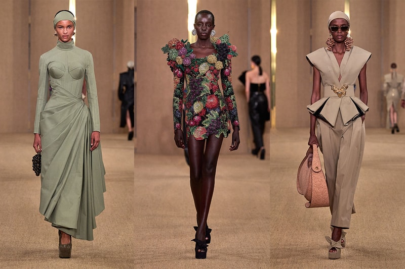 Balmain's Fall/Winter 2024 Paris Fashion Week showcase was an ode to Bordeaux, Olivier Rousteing's hometown. Featuring the bounty of the city as materialized embellishments, the garments glistened with fruits and nuts as structured silhouettes and bold proportions took center stage.