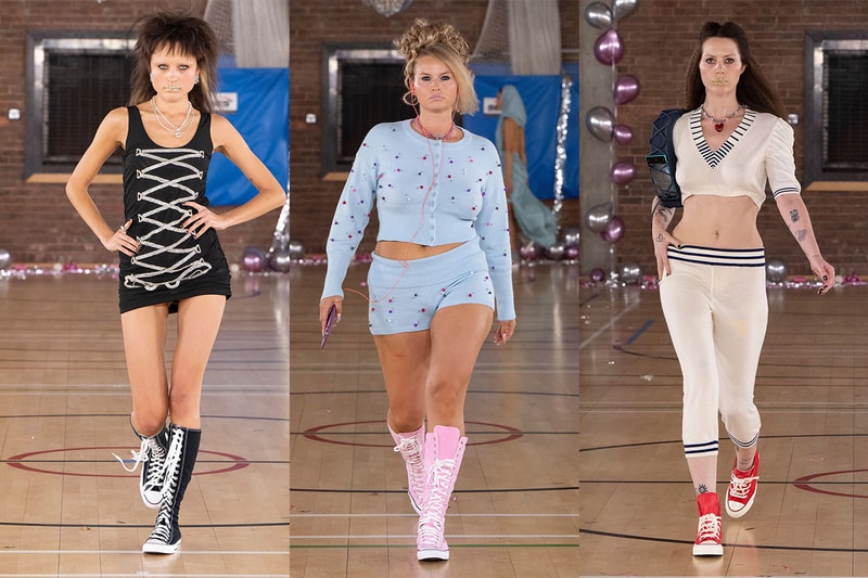 Sinead Gorey spotlighted the return of Converse in a big way, unveiling the newly relaunched the "XXHi," "Chuck Taylor All-Star" and "Chuck 70 Wedge" -- confirming that Converse is officially back in the spotlight. Adding to the excitement, the brand introduced its latest collaboration with Human Mobile Devices, featuring the "HMD Skyline" as part of the "Phonecore" collection. On the runway, models seamlessly integrated the tech into fashion, carrying phones tucked into bespoke spiked belts, bras and jean pockets, merging utility with a rebellious style.