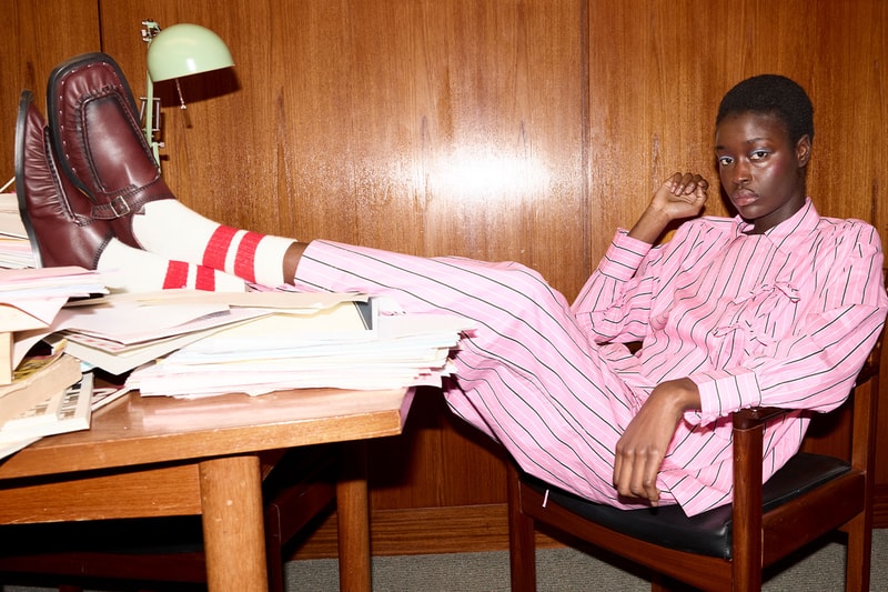 Favoring co-ords for their ease this season, the collection offers playful pieces that you wouldn't typically find in an office setting, designed to make a statement. Juxtaposing feminine prints, hues and details with boyish silhouettes, Damson's "untitled" offering blends bow prints and fastenings with relaxed, boxy fits.