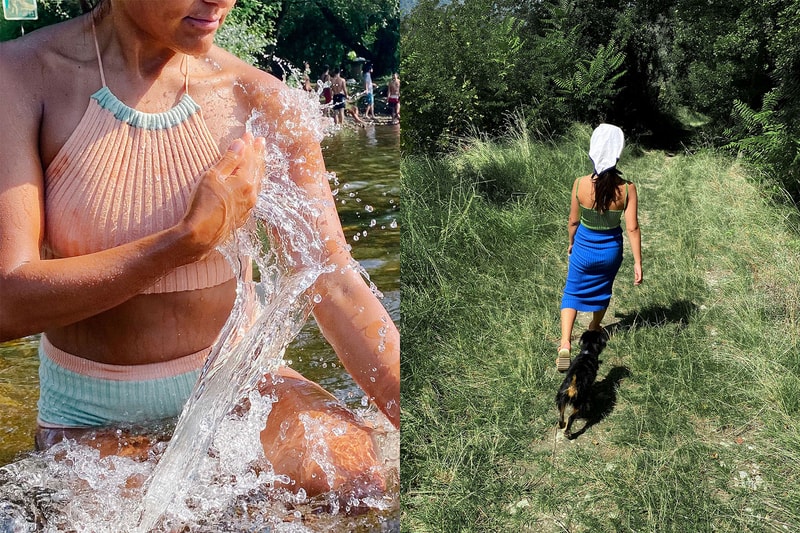 Founder and designer Giuliana Leila Raggiani created the range during her summer holidays in Montvalent, France. The knitwear items arrive in a seasonal "Nonna" color palette, which takes inspiration from the earth, water and movement. Shades like brown "Tsuchi," dusty green "Clay" and "Band-Aid" dominate the range. These colors are found on a selection of knit dresses and pants, as well as cropped tees, hoodies and turtleneck sweaters.