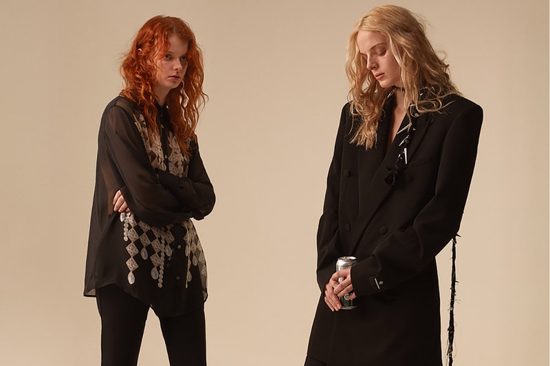 Raw materials such as metals, unprocessed yarns and cardboard adorn the capsule. Tying each design together in the line is the magpie, which is a "symbol of good fortune who seeks beauty," as per a press release. The season's elongated silhouettes arrive in the form of fur embellished bombers boasting lightweight flares, quilted trousers brandishing the brand's signature hems and bags that serve as armor. Shining jewels outline skirts and denim garments, featuring spiked scarves that wrap around the torso. Elsewhere, luxurious trippy mohair offsets the relaxed silhouettes.