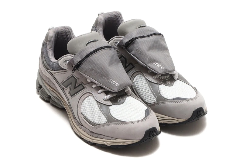 For the reimagined 2002R, New Balance covers the sneaker in gray tones with the palest hue covering the base and the deeper shades on the overlays. A removable zippered nylon pouch covers the lacing system, accented with reflective New Balance branding.