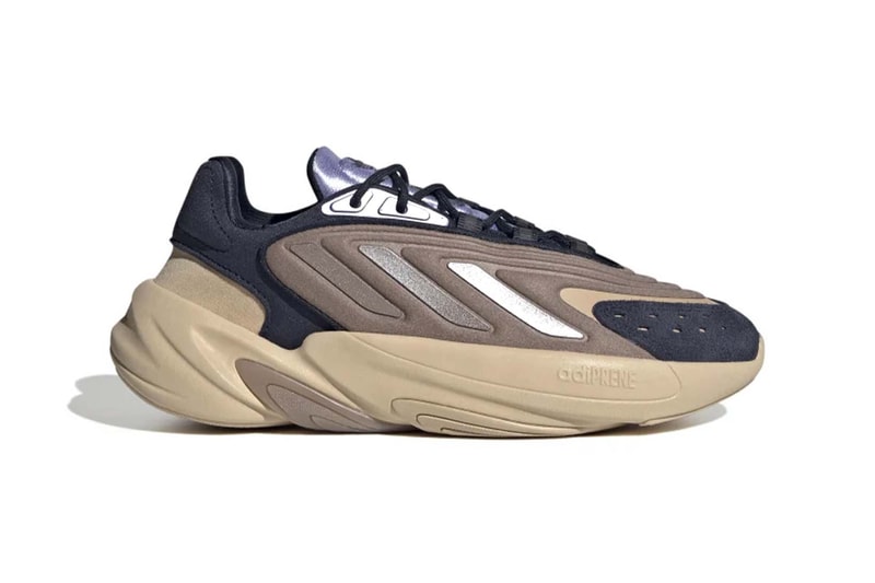 The latest adidas Ozelia lies somewhere in the middle, combining seasonal grays and chocolate browns with a splash of lavender. The "Legend Ink" and "Trace Brown" shades take over the shoe's upper, highlighting a sculpted design with three distinct formations. "Violet Tone" takes center stage on the shoe's tongue, adding a pop of color to the chocolatey makeup.