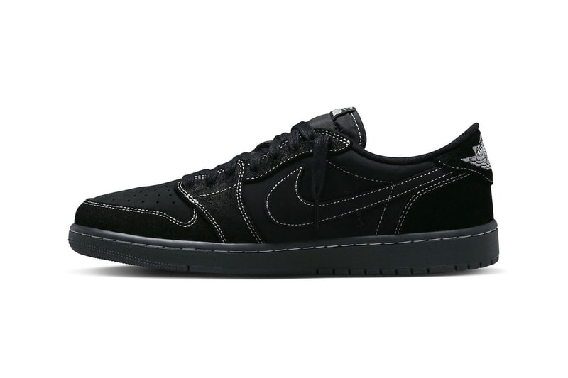 Much like the rapper's previous drops, the OG silhouette features reverse Swooshes on the laterals, while the design dons a tonal look in all-black. White topstitching details add contrast throughout the suede upper, with Nike Air branding found on the tongue tag. The Air Jordan Wings logo is stamped onto the right heel tab, while the left features a bee motif representing his daughter Stormi. The tongue additionally is highlighted with a hidden Cactus Jack logo while the kicks are complete with co-branded detailing on the footbed.