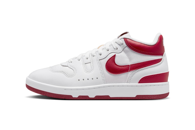 Now simply called, "The Attack" Arriving in a timeless color palette of white and a true crimson red, the formidable silhouette delivers a classic '80s aesthetic. The slightly heightened upper is constructed from a breathable mesh and supple leather. The body of the shoe is largely comprised by the airy and flexible fabric, while the colorway's namesake covers the smooth leather overlays, painting the Swooshes, outsoles and collars in a bright blood red. Meanwhile, the tongue offers a bit of boldness with the help of a checkerboard pattern, whereas the brand's moniker sits proudly on the heels. The Attack boasts an added detail as the shoe's size and style code are printed on the interior medials.