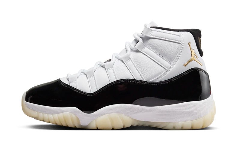 With the release of the AJ XI Gratitude, Jordan Brand memorializes Michael Jordan’s monumental moments on the court and toasts to the legendary label’s day-one fans. A staple for sneakerheads, the silhouette originally released in 2006 as part of the “Defining Moments Pack” alongside the Air Jordan 6, but undergoes an upgrade unlike any other. The revived design sports an embossed gold Jumpman symbol on the heel but trades the original’s ballistic mesh with white leather on the upper, black overlays and mudguard.