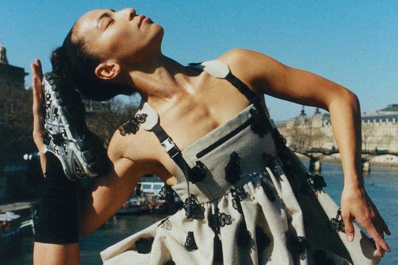 Reimagined with sculptural and floral detailing, the new shoes boast a half-tongue construction and take inspiration from a 2005 marathon tabi shoe, discovered by Bahnsen during a trip to the ASICS archive. Incorporating the archival silhouette's asymmetrical laacing system and D-ring hardware, the new shoe merges technicality with couture.