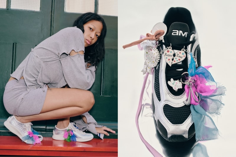 From Williams, you can expect cartoon silver bunnies complete with pink bows to attach to the front of your laces. Jawara Alleyne provides a pop of color with mesh tulle bows in bright pink, blue and green that can dangle from the side of your shoe, while HRH designed long pink elastic bows with a metal ribbon crest for a hardware addition. Check out the adorable campaign images above, shot by Carly Scott and styled by Lola Chatterton.