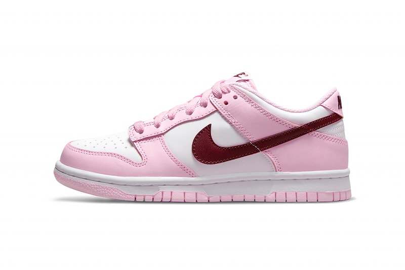 Price at $85 USD, the GS Nike Dunk Low "Pink/White/Red" will reportedly drop on July 6 via Nike SNKRS.
