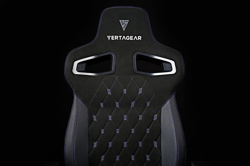 The racing-style chair boasts a crystal-studded version of Vertagear's logo emblazoned on the headrest. Complementing the sparkly emblem, the chair's top-stitched body is adorned with a repeating diamond pattern, also rendered in dazzling crystals. Royal purple detailing gives the piece a holographic feel.