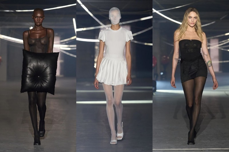 Butt-exposing dresses aside, lingerie elements featured heavily. There was also a new pillow dress, which is always fun. And familiar faces, too: Cara Delevingne navigated the blinding runway (in shoes that were clearly too large for her) with total grace. Anok Yai closed the show in a black ballgown, shedding tears as she dramatically made her way down the runway, giving pure cinematic drama before the lights went down.
