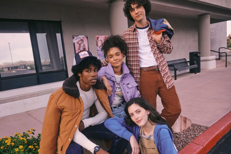 Each piece is paired with a throwback ad campaign shot in the style of Wrangler's signature late-'80s promo shots, featuring looks styled for each character. Some highlights include the "Will Jacket," a varsity-coded style with a relaxed fit and contrast sleeves, and the "Nancy Jean," a slim-fit, tapered silhouette in a blush bubblegum wash that channels the character's signature charm.