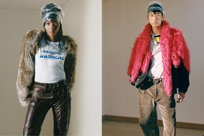 This season begins with real-life garments, reworked through Rose's singular point of view. The result is a wardrobe built on contradiction: corset lacing disrupts workwear staples, while performative gender play unfolds through silhouettes that rely on attitude over polish. Renaissance-inspired proportions appear through sculptural hanging sleeves, while faux fur adds a hyper-textural edge, seen not just on jackets but unexpectedly sliced into denim panels.